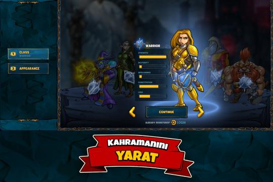 Oyunda Savaşçı, Büyücü, Savaş Büyücüsü, Suikastçı, Vahşi Savaşçı ve Avcı olmak üzere 7 farklı sınıf mevcuttur. Sınıfımızı ve karakterimizin görüntüsünü belirledikten sonra oyuna başlıyoruz. Oyunda yer alan temel alanlar; meyhane, arena, silah satıcısı, büyü dükkanı, ahır, zindan ve kaledir. İlk iş olarak meyhaneye gidip uygun bir göreve çıkıyoruz. Görevler arasında seçip yaparken xp ve altının yanında ödül olarak eşya da veren görevleri seçmemiz faydalı olacaktır. Bu eşyaları kendimiz kullanabilir ya da silah satıcısna satarak karşılığında altın alabiliriz.